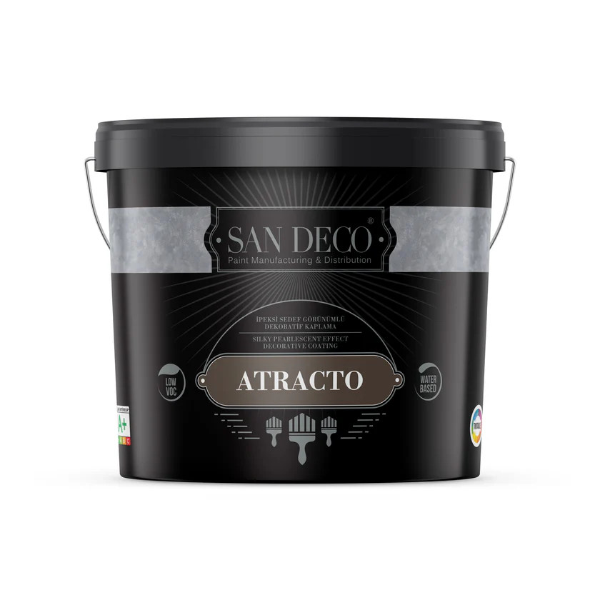 Atracto je dekorativní nátěr na bázi akrylové emulze, který je známý svou hedvábnou strukturou a úžasným stříbrným a zlatým perleťovým povrchem.