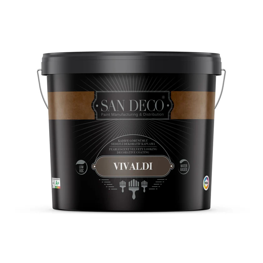 Vivaldi je dekorativní interiérový nátěr na bázi akrylové emulze. Obsahuje speciální přísady, plnidla a perleťové pigmenty, které jsou navrženy tak, aby povrchům dodaly sametový a elegantní vzhled.